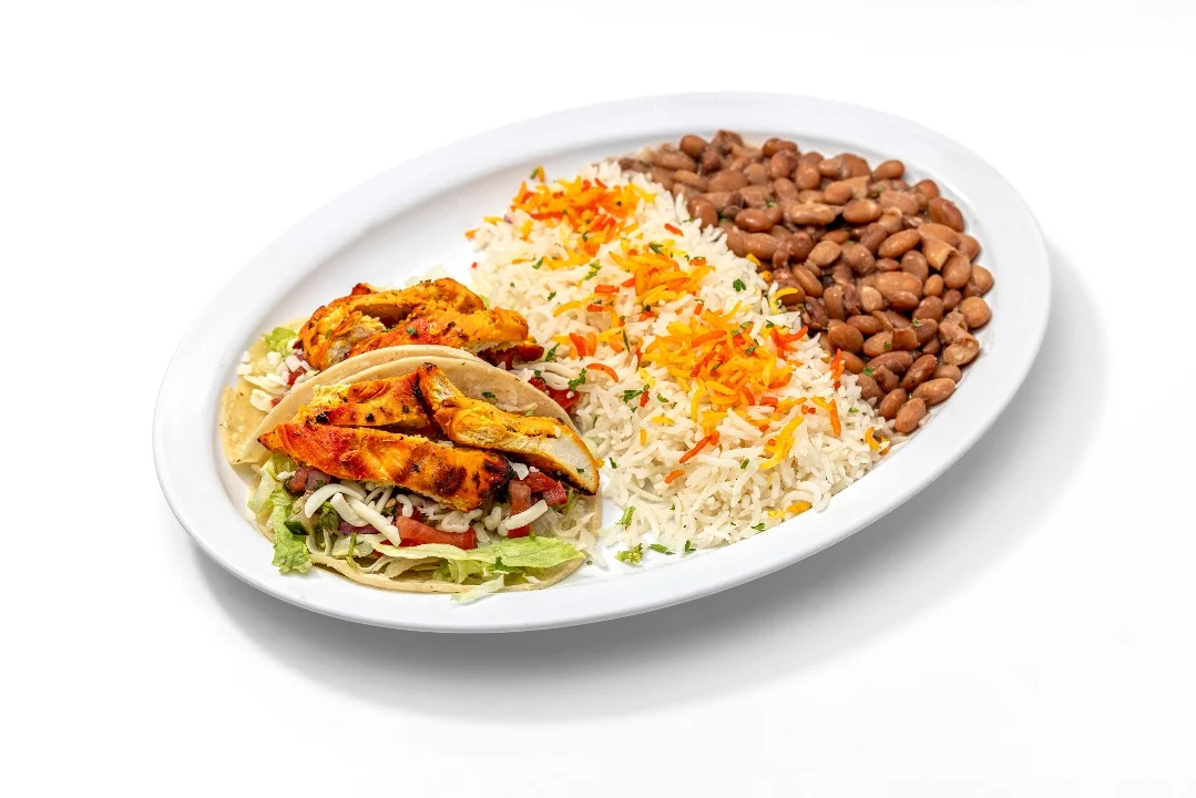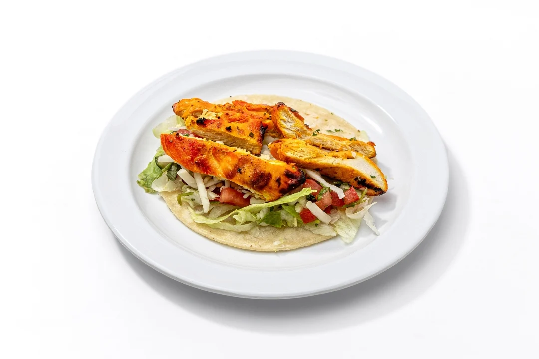 Grilled chicken on a corn tortilla with lettuce, pico de gallo, garlic sauce and jack cheese