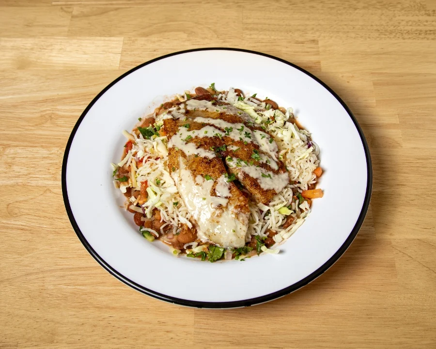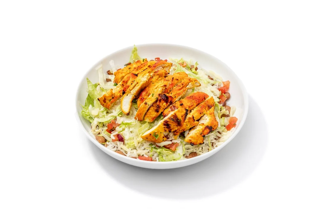 Marinated chicken grilled and served on basmati rice, pinto beans, lettuce, jack cheese and pico de gallo
