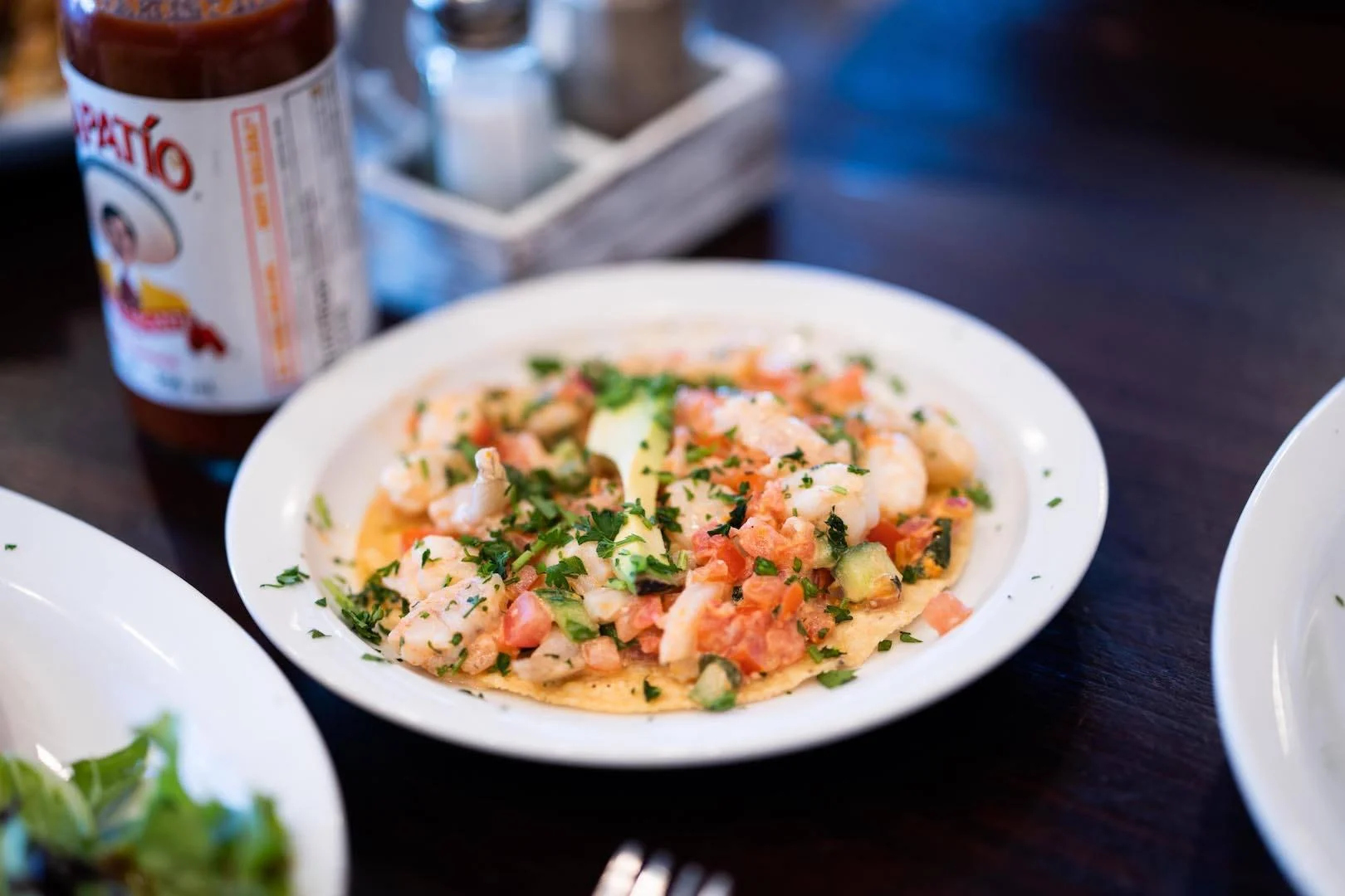 Shrimp, Krazy Sauce, Pico de Gallo & Avocado served on a Crispy Tostada