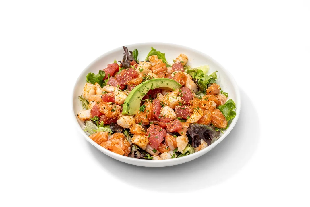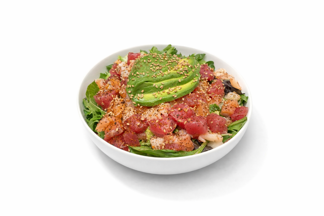 Sushi grade ahi tuna & salmon, shrimp, mixed greens, sesame seeds & ponzu.