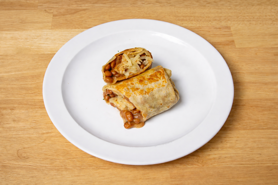 Pinto beans and jack cheese in a flour tortilla