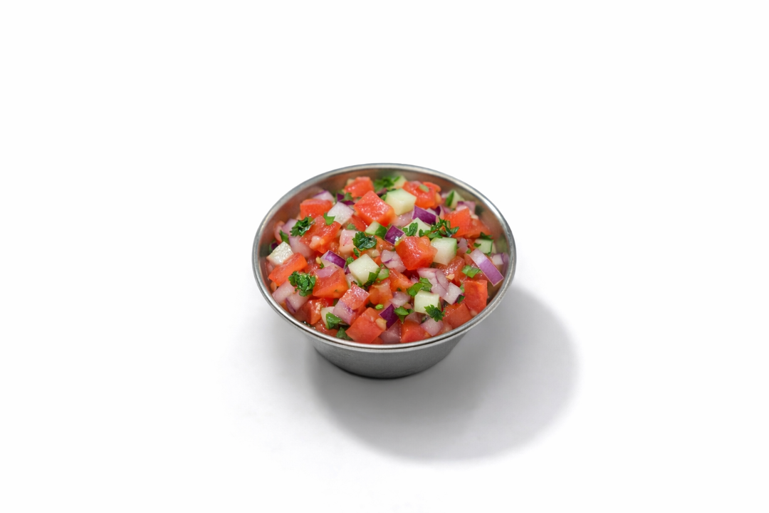Lamb gyro sliced off a vertical grill. Served on mixed greens with tomatoes, cucumbers, red onions and fire roasted corn