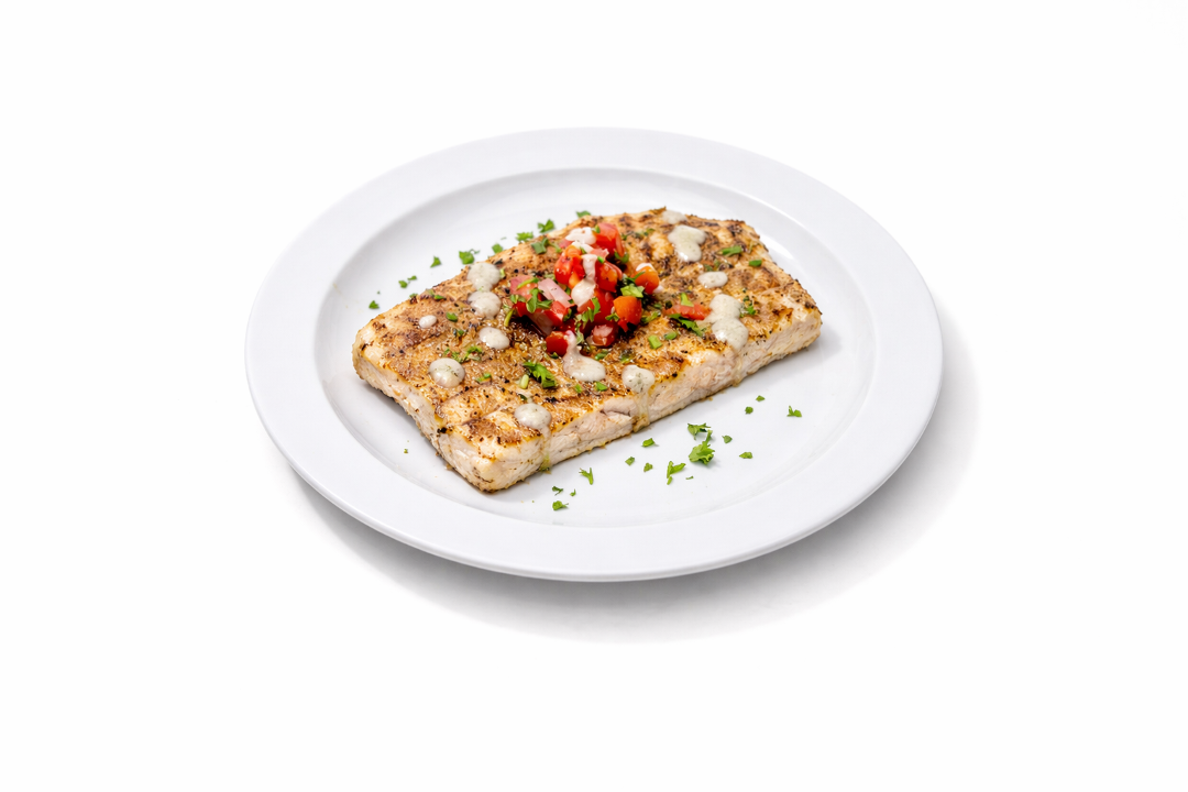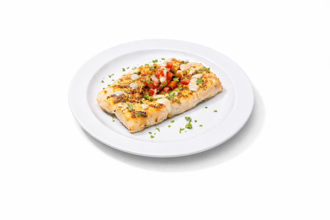 Side of grilled Alaskan cod topped with Mojo sauce and pico de gallo