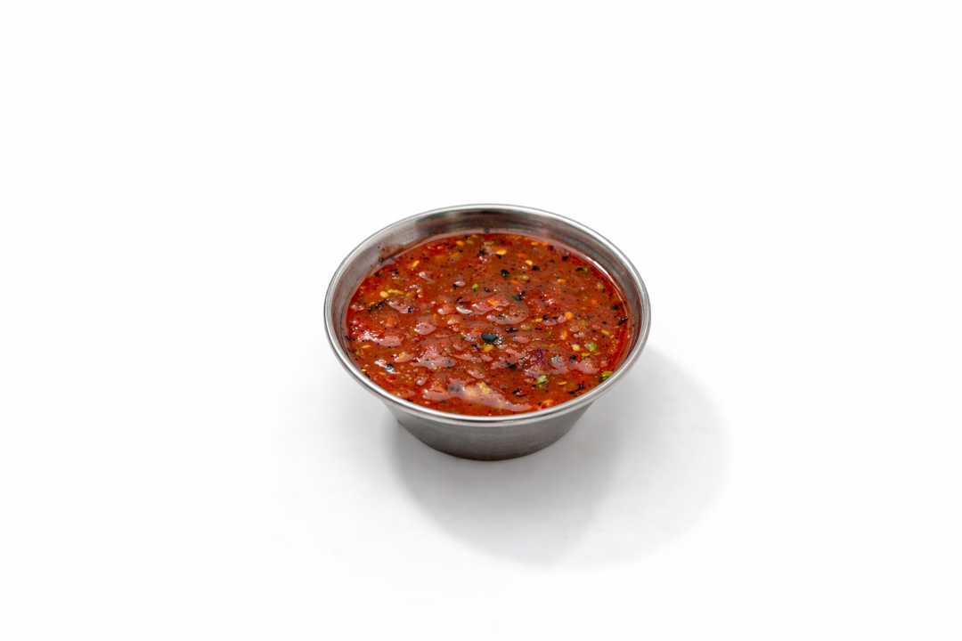 Five pieces of large grilled shrimp topped with our Diablo Mojo sauce. Served with basmati rice, grilled veggies and salad