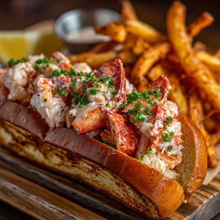 Tender lobster meat in a buttered brioche roll. Served with seasoned fries and a side of Krazy sauce